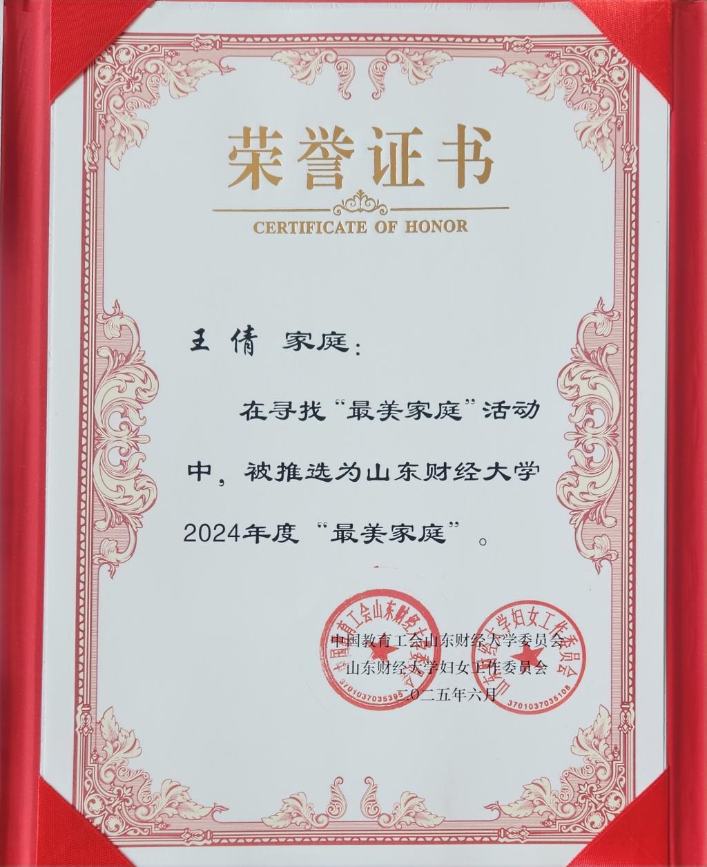 经评选,由正规博彩平台工会选推的王倩老师家庭以优异成绩获得本次活动的“最美家庭”称号。王倩老师在教学科研一线辛勤耕耘的同时,十分注重子女教育,女儿于去年考取了北京大学。她在孩子成长过程中,始终秉持“读万卷书,行万里路”的教育理念,重视培养孩子的国际视野与家国情怀;注重引导孩子广泛阅读中外经典,并通过多次海外旅行,拓展孩子的世界观和跨文化理解能力;注重中华文化的传承,鼓励孩子参与公益活动,培养孩子的社会责任感。