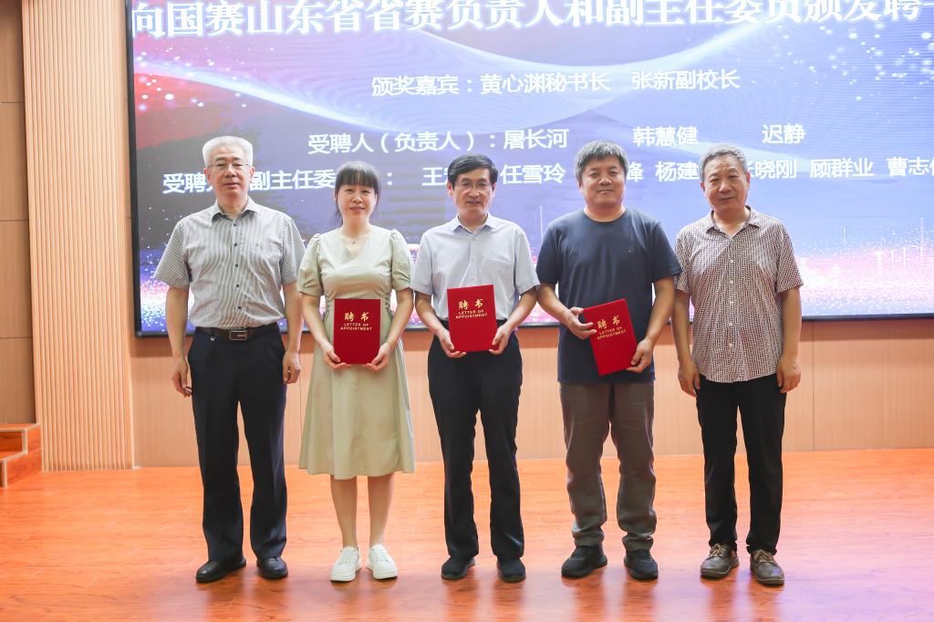办好此次赛事的信心。淮永建教授公布了全国大学生数字媒体科技作品及创意竞赛山东赛区专家委员会成员名单,大会任命屠长河教授任专家委员会主任,韩慧健教授任常务副主任,迟静教授任秘书长。全省高校和企业代表共33名任专家委员会委员。张新副校长、黄心渊教授、淮永建教授、屠长河教授为专家委员会成员颁发了聘书。屠长河教授代表山东赛区专家委员会向参会的领导和专家汇报了山东赛区的准备活动,并表达了做好大赛的决心。山东赛区专家委员会秘书长迟静教授对本届赛事作了详细解读。
