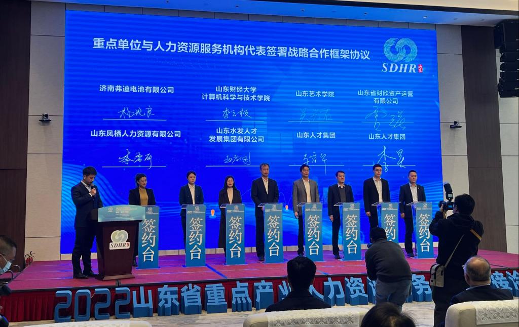 本次洽谈会以“融合•聚力•赋能”为主题,通过合作签约、政策推介、主旨演讲、交流洽谈等活动形式,进一步释放人力资源服务效能,精准对接重点产业人才引育需求。会上,学院与山东水发人才发展集团有限公司进行了现场签约。双方将以党建为引领,建立长期、紧密的合作关系,积极为合作创造各种有利条件,在数字化人才教育培训、人才交流、学科共建、管理咨询、智库支持、就业实习基地等各方面,构建合作平台,拓展合作领域,创新合作机制,共同推动院校和企业互利共赢。