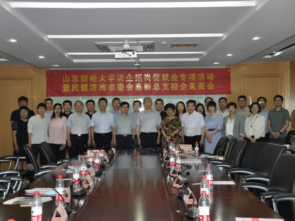 民建济南市委高新区总支部委员会主委杨俊勇对我校访企拓岗活动表示热烈欢迎和大力支持。济南高新区管委会发展保障部就业保障办公室副主任张伟、人才统战办公室副主任丁一涵分别介绍了济南高新区在高校毕业生就业创业服务、人才补贴等相关优惠政策,并欢迎山财大毕业生到高新区求职就业。