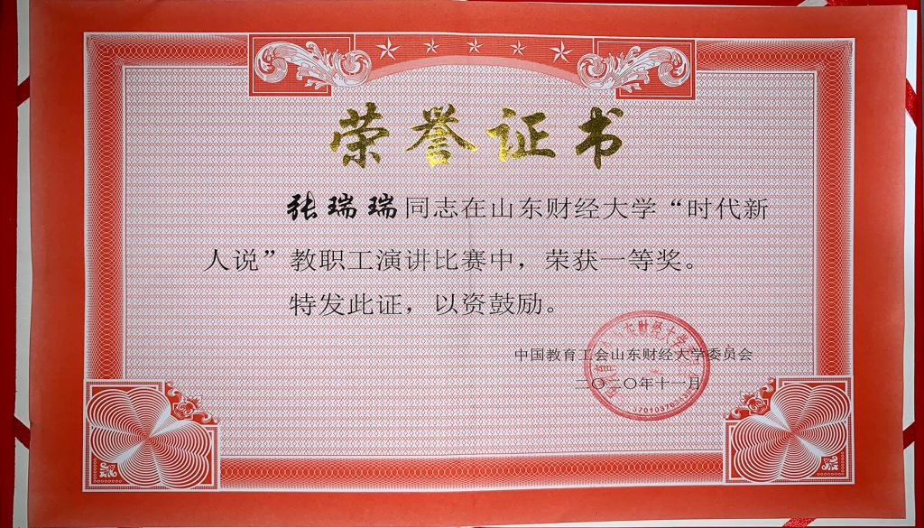 近日,我校开展的“时代新人说”教职工演讲比赛落下帷幕。张瑞瑞老师代表学院参加比赛,以第一名的成绩获得一等奖,并被推选代表学校参加省赛。