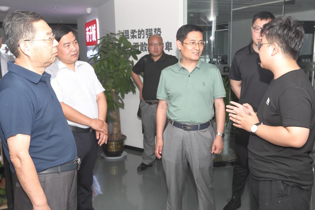 在山东数字经济产业园,代表团在区工信局局长耿汝年陪同下观看园区介绍短片,听取园区负责同志的讲解并深入入驻企业参观考察。在誉存科技、赤子城等科创企业,企业负责人分别介绍了公司核心业务及其在小微企业融资风险评估、提振“宅经济”、服务互联网“出海”等领域的应用成果。