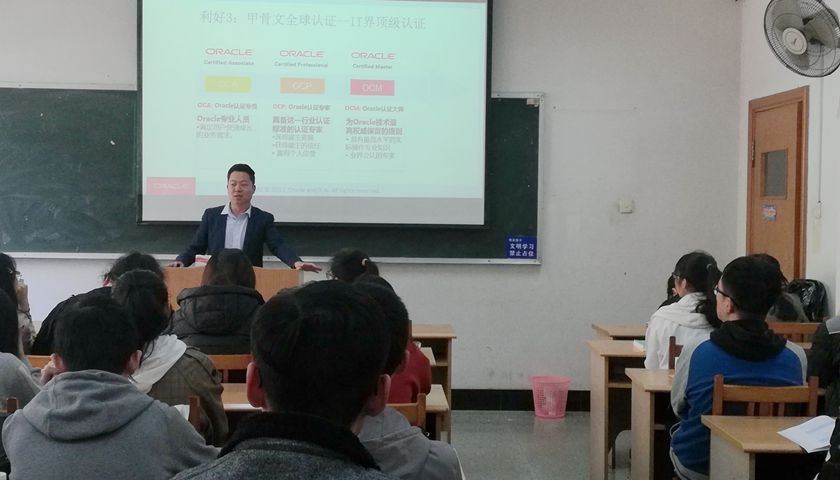 为加强同学们对计算机互联网相关行业发展趋势及就业形势的了解,明确自身就业方向,4月10日,正规博彩平台在燕山校区举办了互联网行业就业交流会。本次交流会特邀甲骨文公司工作人员汪洋作为主讲人,电子商务1602班全体同学参加了本次交流会。