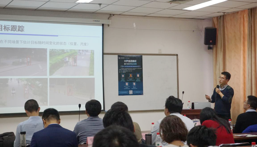 自动化研究所的张天柱博士,他的报告题目为:目标跟踪算法研究进展。张博士提到目标跟踪是计算机视觉领域的热门研究方向之一,同时在产业界也具有广阔的应用前景。他首先带领大家回顾目标跟踪的研究进展,然后介绍一些代表性方法,如粒子滤波、基于分类器目标跟踪、稀疏跟踪、基于深度学习跟踪,及相关滤波等,最后介绍了团队的相关研究成果。