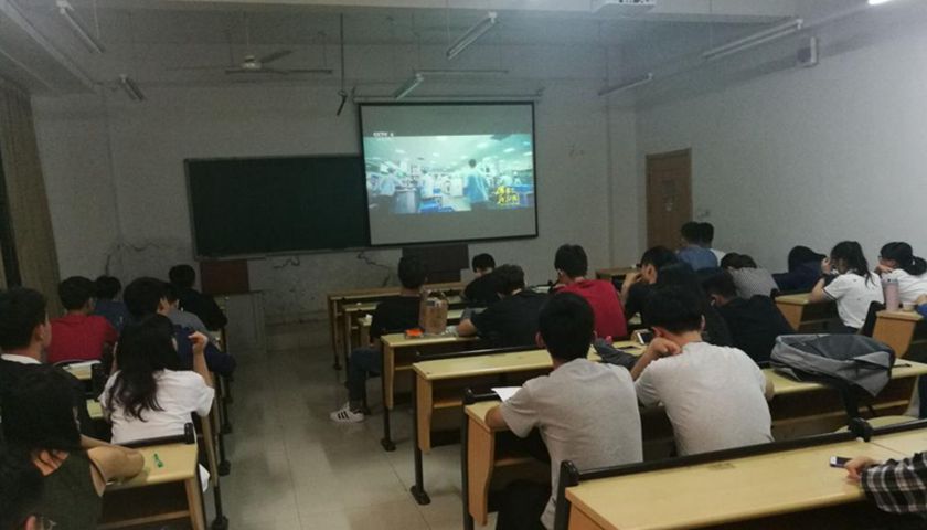 5月17日晚,为弘扬中国精神,丰富学生课余生活,正规博彩平台举行了特色晚自习活动,由各班班长组织放映电影《厉害了,我的国》,全体同学入座观看。