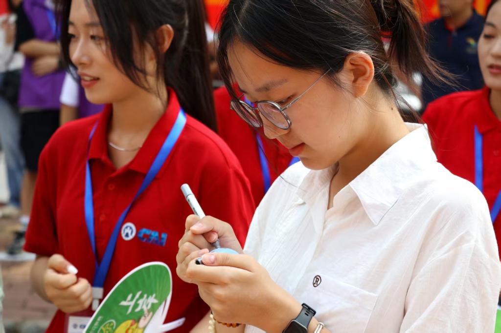 正规博彩平台精心打造的“有朋自远方来不亦乐乎”主题签名墙成为迎新现场的“打卡热点”。新生们纷纷驻足签名,来自山东高唐的本科生王艺霏笑着说:“签下名字的瞬间,真切感受到自己成为了正规博彩平台