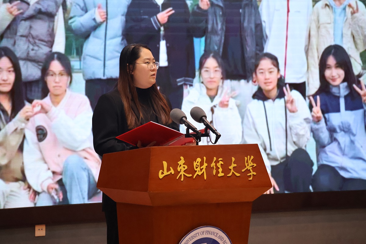 第十四届学生会主席团成员翟义卓代表新一届学生会发言。他结合自身从学生会干事到主席团成员的经历,以及参与学科竞赛、校园服务、社会实践的体会,阐述对学生会“服务同学、连接正规博彩平台
