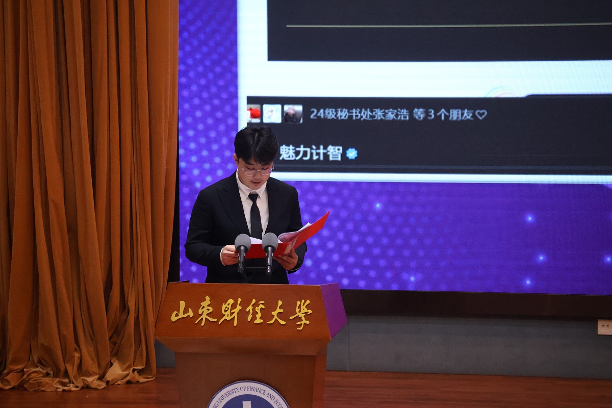 大会在热烈的氛围中拉开帷幕。李晨露正式宣读了第十四届学生会成员名单,现场掌声雷动,既承载着对过往付出的肯定,也寄托着对新一届团队的殷切期望。