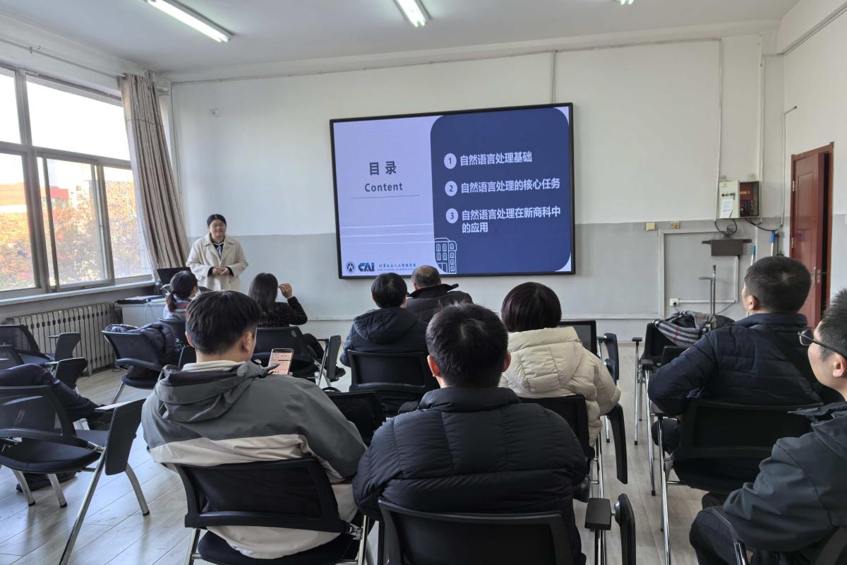 随后,会议重点针对“自然语言处理”和“大模型与生成式人工智能”这两个难点章节进行了磨课。考虑到财经类学生数学基础相对薄弱,两位青年教师结合实际,进行了教学演示,展示了如何将复杂的前沿理论讲得通俗易懂,在互动设计和表达技巧上为其他老师提供了很好的参考。