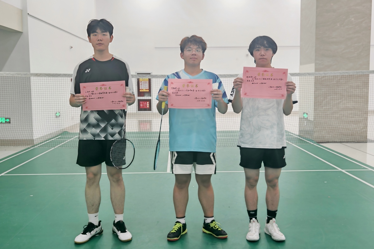本次比赛吸引了学院近百名羽毛球爱好者踊跃报名参赛,比赛伊始选手们便全力以赴,现场紧张激烈的氛围瞬间被点燃,掌声与喝彩声接连不断。进入四强后,选手们展现了更高的竞技水准,他们在赛场上跳跃、挥拍,扣杀、劈吊等精湛技术展现得淋漓尽致,洁白的羽毛球在空中急速往返,每一次多拍回合都扣人心弦。整个赛场不仅是对选手体力与技术的终极考验,更是意志与智慧的集中展现。经过激烈的角逐,计算机科学与技术2502班李朝祥、人工智能2501班胡业松、计算机科学与技术2504班王孜文分获冠、亚、季军。