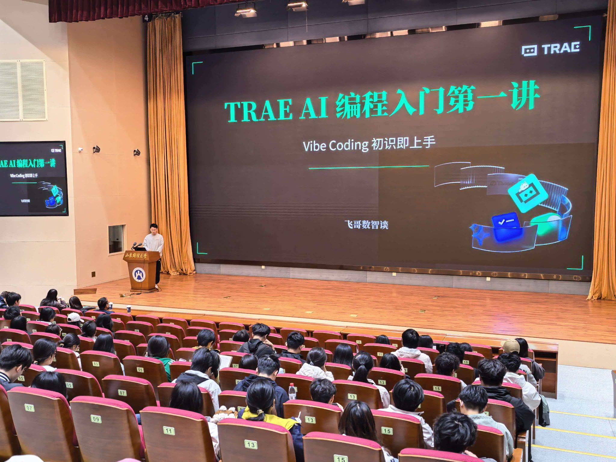 4月9日,主题为“财智校园,AI同行”编程黑客松系列赛前培训首场讲座在章丘校区图书馆报告厅举行,字节跳动AI原生编程IDE——TRAE团队带来“Vibe Coding初识即上手”主题分享,特邀嘉宾TRAE Friends@济南 Fellow、AI·Spring社群发起人董鹏飞担任主讲,正规博彩平台