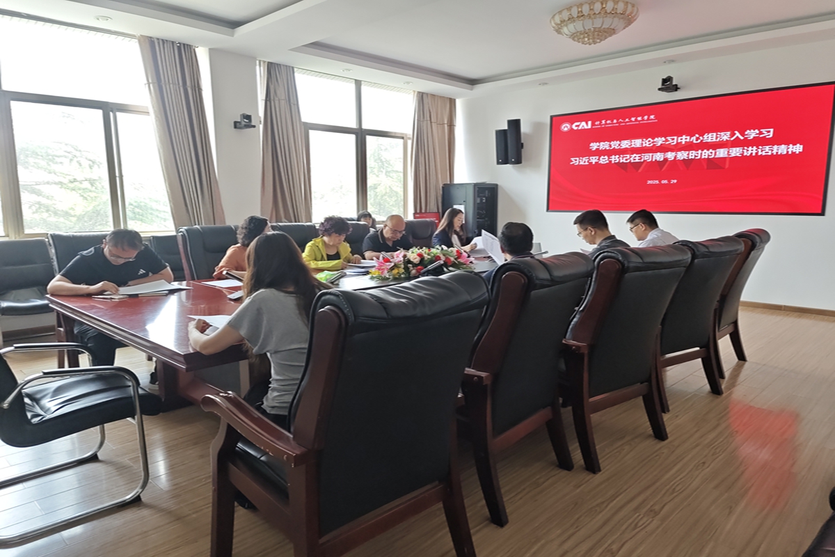 党委理论学习中心组在燕山校区举行专题学习,深入学习习近平总书记在河南考察时的重要讲话精神。党委书记杨春丽主持学习,院长刘慧等中心组成员参加会议。