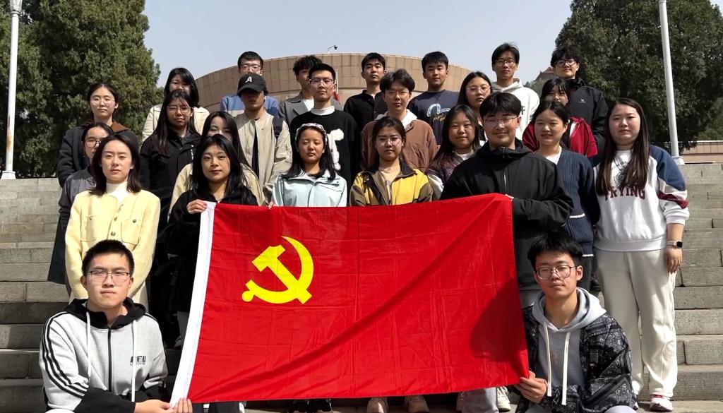 在纪念馆的庄严氛围下,学生第三党支部书记李晨露带领党员同志们面对鲜红的党旗,共同高举右拳,庄严宣誓,继承革命先烈遗志,以实际行动恪守对党的承诺。