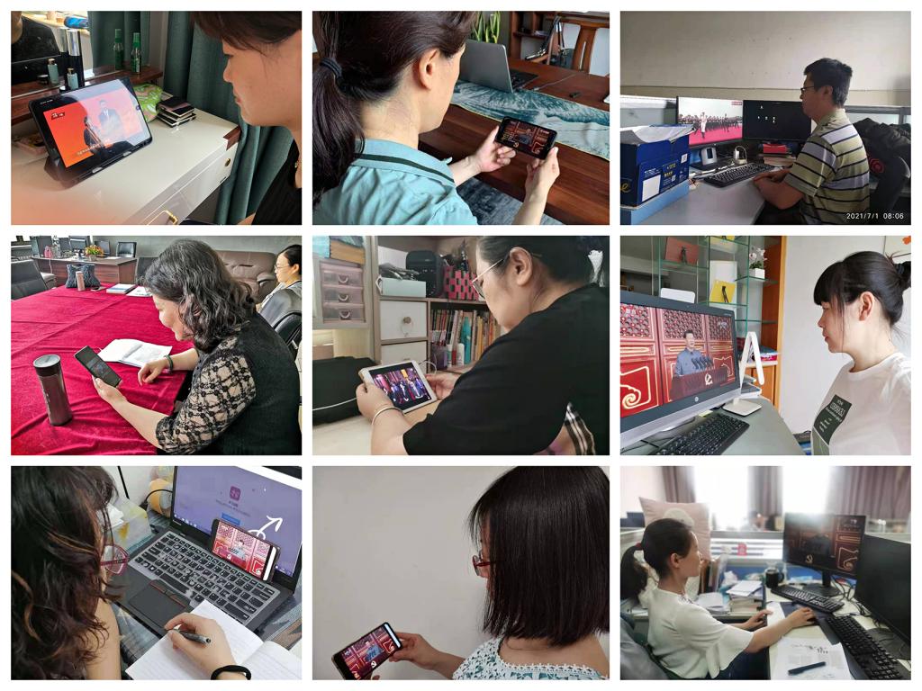 党政领导班子、各支部师生党员代表齐聚1406会议室收看庆祝中国共产党成立100周年大会直播盛况,其余师生自行组织观看并学习,一起庆祝中国共产党成立一百周年,共同回顾中国共产党百年奋斗的光辉历程,展望中华民族伟大复兴的光明前景。