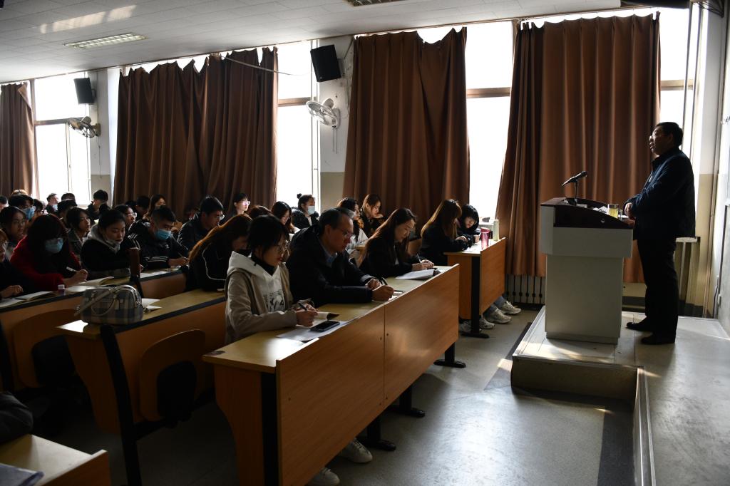 开班仪式上,王有志为大家上了题为《坚定信念,加强修养,强化锻炼,立志成为合格的共产党员》的党课。他讲到青年是祖国的未来,民族的希望,青年兴则国家兴,青年强则国家强。青年一代有理想,有本领,有担当,国家就有前途,民族就有希望。党在不同时期对青年学生寄予厚望,提出要求表述不同,但是核心内容不变。当代青年大学生,处在中华民族伟大复兴的关键点上,就要争做有理想、有本领、有担当的时代青年,理应加强政治追求,成为政治上可靠,思想上成熟,行动上先进的光荣的共产党员。其次,他指出面向未来,走好新时代的长征路,就要坚定理想信念,矢志不渝的拼搏奋斗,心有所信,方能远行。要加强思想修养,就要在理想信念上做一个明白人,在道德品质上做一个高尚的人,在生活里做一个干净人。他着重强调了加强理论学习的必要性和重要性:加强理论学习,有助于提高共产党员的思想理论素质,有助于保持政治上的清醒和坚定,有助于提升思想境界和道德修养,有助于提高为人民服务的本领。加强理论学习是党员立足的根本,作用不可忽视。同时,王有志传达了党中央召开党史学习动员大会上习近平作出的重要讲话精神、山东省召开党史学习动员大会上刘家义书记重要讲话精神以及学校学习党史动员大会的有关会议要点,他要求广大发展对象认真学习“四史”,尤其是党史,要从中汲取营养,武装头脑,指导实践,推动工作。他强调,今年是建党一百周年,发展党员工作时间紧,任务重,但是发展党员的标准不能降低,一个环节也不少,一个步骤也不打折扣,严格标准和程序,确保发展党员的质量。