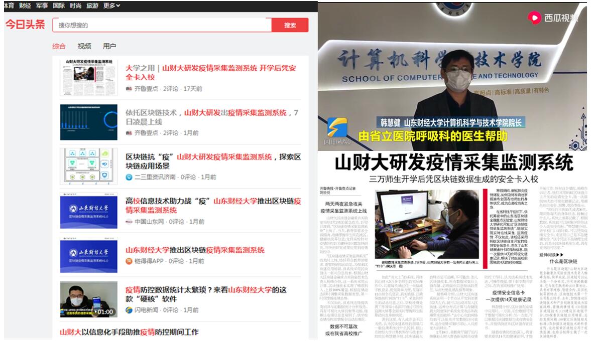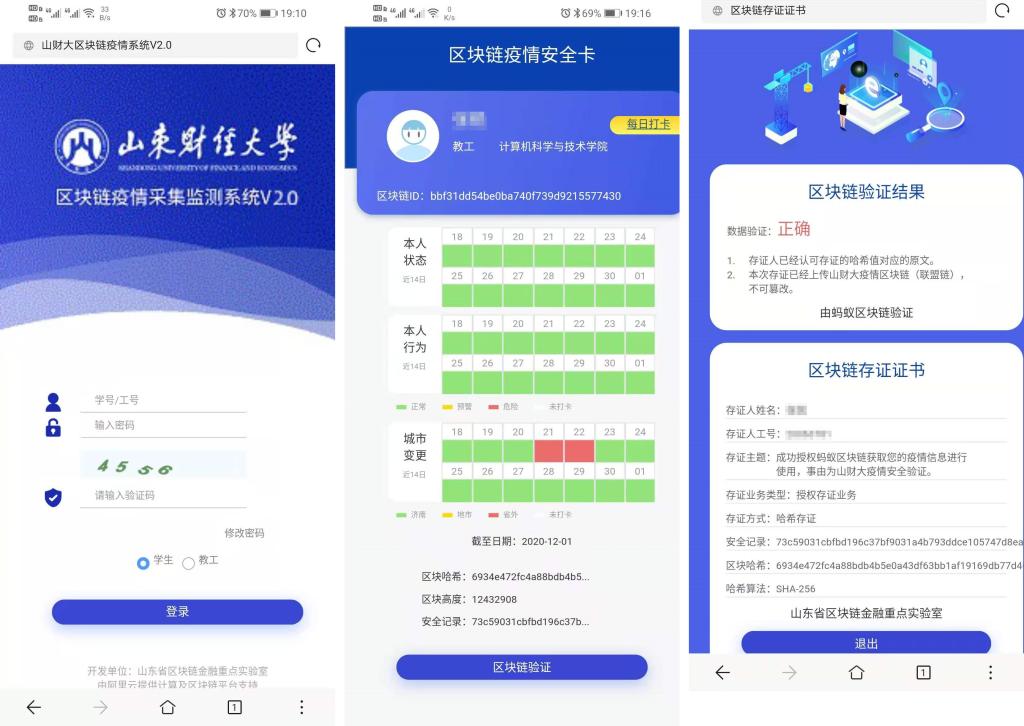 、山东省区块链金融重点实验室、阿里云、山东省立医院等技术力量协同研发部署。系统上线后,学校迅速通过微信公众号、企业微信以及学校通知公告等方式通知全校师生即日开始测试填报,并自2020年2月8日起正式进行每日填报。