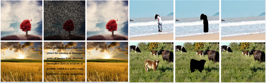 本文提出了一种高效的截断低秩近似策略以实现对待修补图像进行估计。利用图像内在的冗余信息构建相似图像块矩阵,通过矩阵的最优低秩近似理论直接导出缺失像素的估计值。同时,为了细化图像的纹理结构,利用残差图像和纹理结构小尺度的特点,进一步对其进行最优低秩近似。