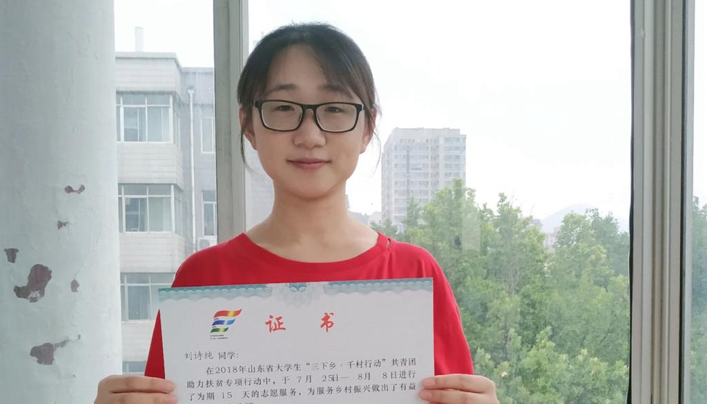 同时,她积极参加社会实践活动,参与乡村振兴战略下第一书记助力巾帼人才振兴项目,实地走访临沂市大兴镇半月有余,团队获得暑期社会实践专项行动国家银奖、山东青年志愿服务项目大赛省级金奖以及被评为优秀服务团队。与此同时,她积极参与互联网加一类竞赛以及全国大学生节能减排社会实践赛事。